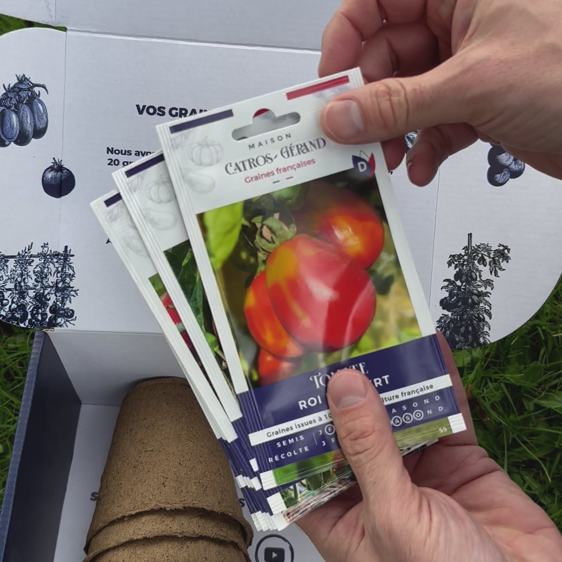 Ce coffret contient un fascicule qui explique l'histoire de ces tomates oubliées et remises en production +3 rééditions de fiches descriptives d'anciens catalogues +5 godets biodégradables pour démarrer vos semis et 9 sachets de graines, dont 5 de tomates :